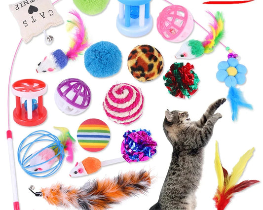 DualPet 20-Piece Cat Toy Set, Includes Mouse, Bell, Ball, and Cat Stick